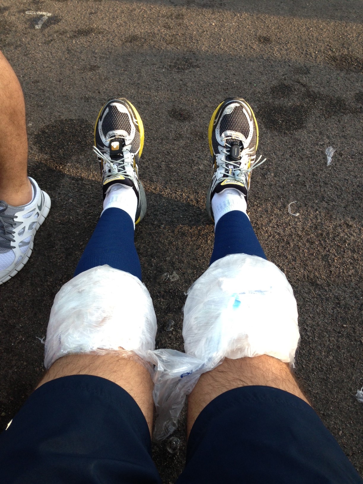 First stop after receiving our medals….self treatment. Ice had never felt so good. We sat there for 20 or 30 minutes. It was a sense of relief. Shari was texting with Rina and her parents and I was chatting with the same guy from NJ I had met in self treatment yesterday. We were done. We made it over to the Goofy tent to get my medal and headed out to meet up with our friend Beth who had finished about 20 minutes ahead of us.
