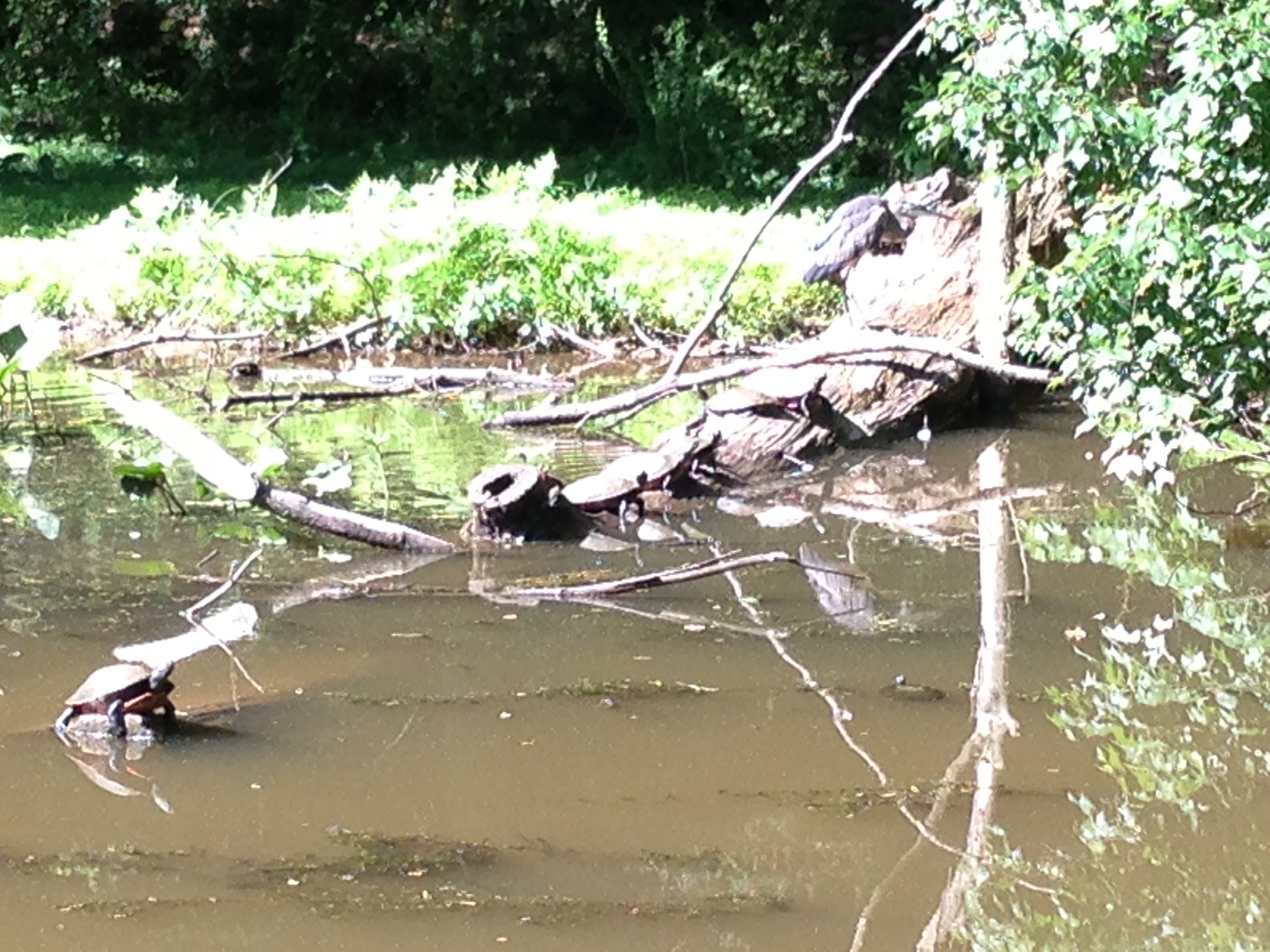 Wow, all I can say is that if you feed a kid a muffin you hear nothing out of them for at least the first 2 miles into a run. The trade-off I guess is that you cannot do that on every run or the stroller will get too heavy to push LOL but it worked for when we needed it. It was a fabulous if a little warm day to be running on the canal and it turned into somewhat of a nature walk as we spotted (as my eldest son correctly pointed out) herons and dragonflies, families of ducks and geese and at one point 6 turtles resting on a log. Nice.