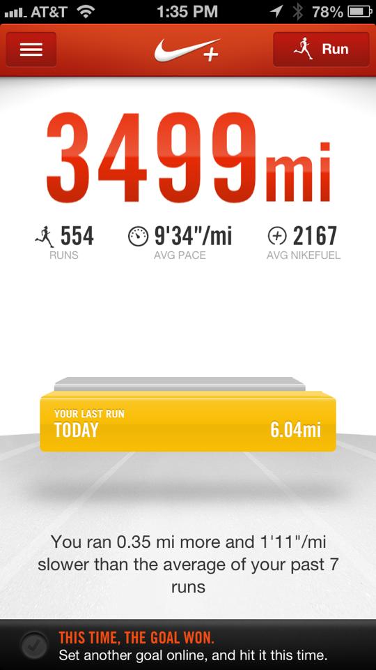 It’s hard to believe that just 3 years ago I hadn’t run at all. I actually reached 3,500 miles of cumulative running this weekend (since I started recording my mileage in September 2010).