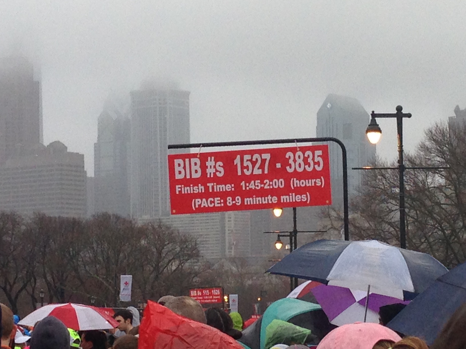 Mike arrived early Sunday with my bib and we headed down to Philadelphia together. I decided to park in an indoor lot to stay warm as we were a little early. This was a good choice for us later.