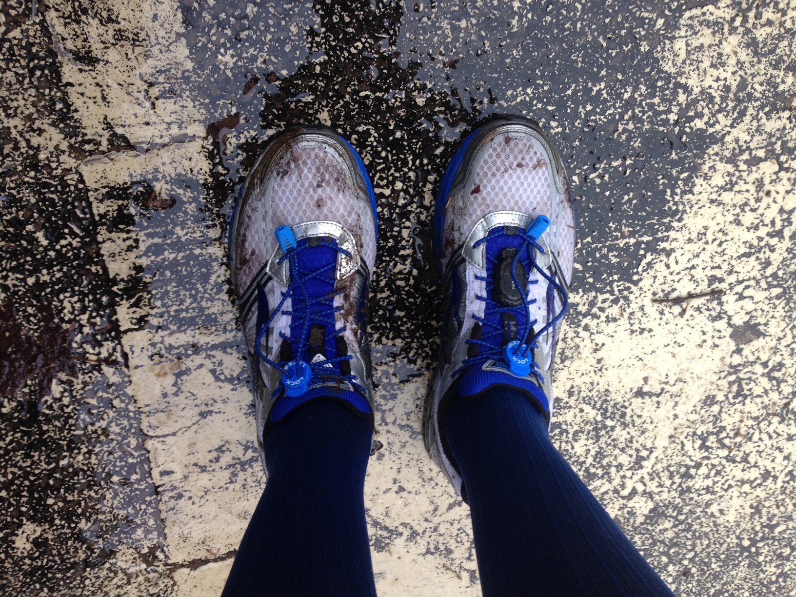 I am so grateful my wife had talked me out of wearing my new shoes for this race. I am trying to break in a new pair before the marathon and had only run twice in them so far. These shoes were absolutely saturated and a little muddy (I trod carefully) and luckily after some TLC they are wearable again.