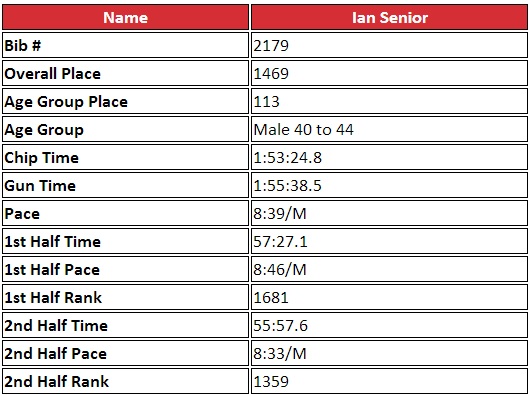 I missed my PR by 41 seconds (Atlantic City Half Marathon 2013) but considering the conditions I was very pleased with my run. A negative split indicates that I did run sensibly for the half marathon and I feel good going into the marathon next month.