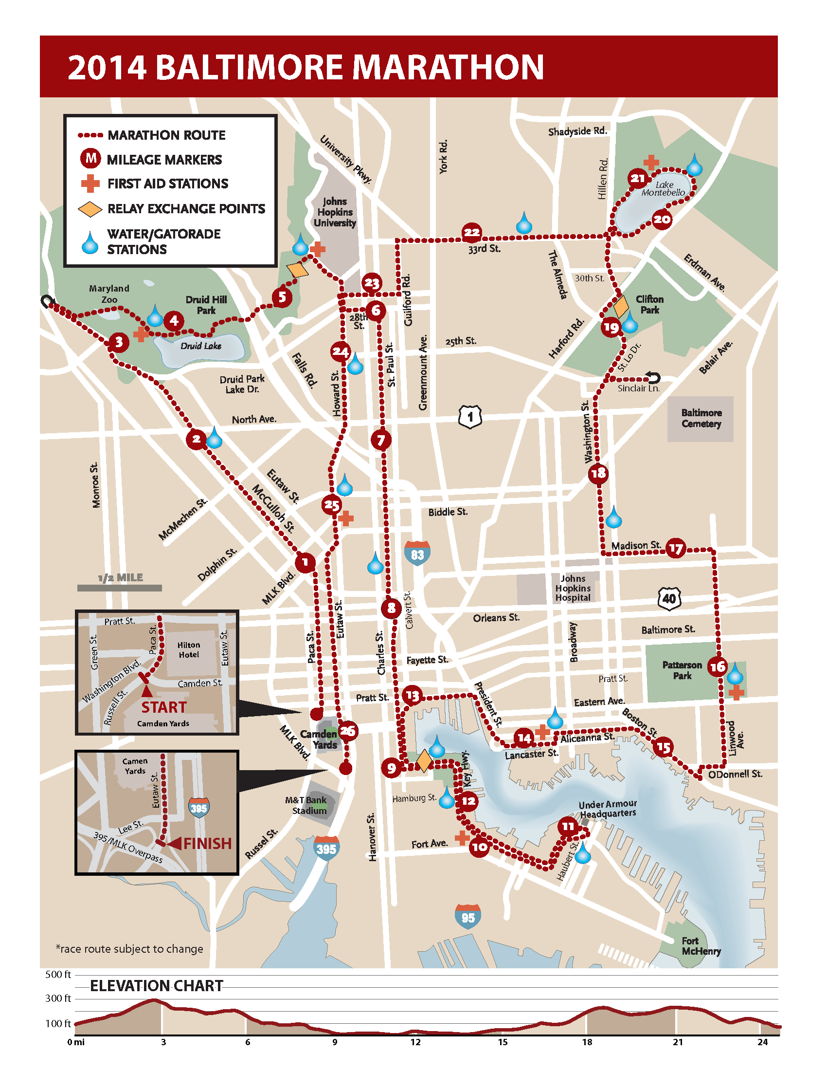 This was a great choice to run. It was a great course (though hilly) and took us all over the city. I would highly recommend this. We were lucky to have perfect weather, the trip to and from Baltimore was easy and other than the issue with the hotel it was a perfect trip. In summary this was a great course, great support, great race organization, great shirts and a great medal. I’m glad we chose this and this being my 10th marathon I will remember this one for a long time.