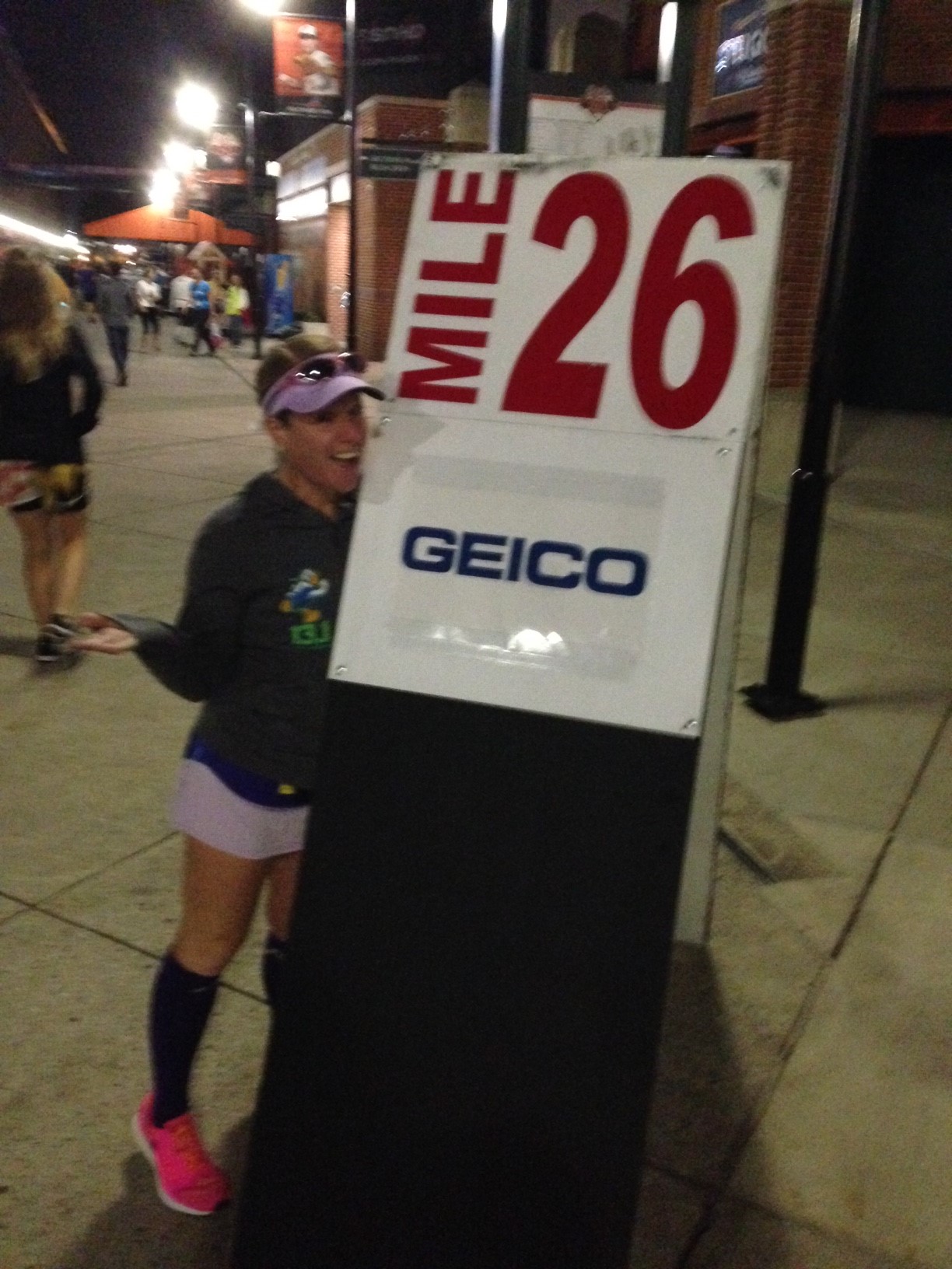 As we ended our run through the neighborhoods and headed back into the city proper we knew we were going to make it. It was a matter of ticking down the final 5K to the finish. As we got closer and closer we could feel the excitement that we were almost home. Soon enough we saw the stadiums as we approached and we ran into the entrance to Camden Yards. The finish line however wasn’t in the stadium so we may have gotten our hopes up too early, however we were not too far and finally the finish line was in sight. Holding our hands high above us we crossed the finish line together. Shari had finished her 3rd marathon and I had just finished my 10th marathon. We hit 4:45 which was pretty much what we had planned even though we had slowed over the last 6 miles.