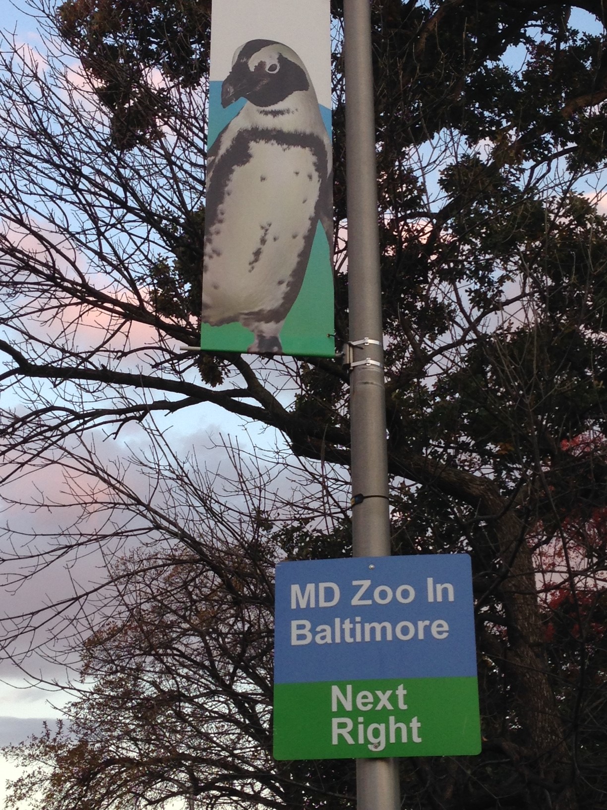 Once we entered the park we made it into the Baltimore Zoo. They had some of the zoo keeping staff out with various animals, birds, etc. We ran past a raven (this was Baltimore obviously), an American kestrel, a cuckoo bird (I think) and we managed to get a picture with one of the penguins outside the new penguin exhibit. Pretty cool and my boys were impressed with that.