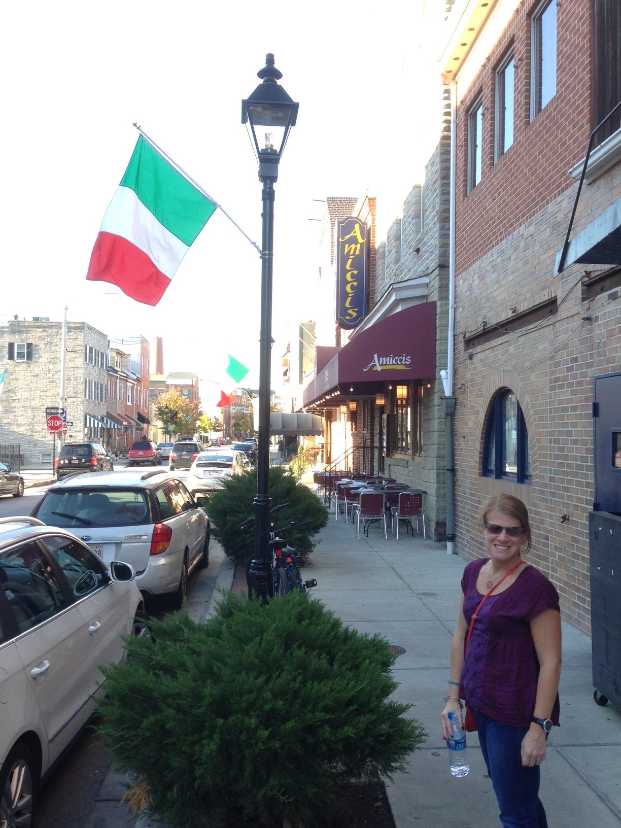 With the expo over we dropped off our bags of swag back in the hotel room and set out to explore a little of the Inner Harbor area. We have visited Baltimore as a family a couple of times but without the boys in tow we could walk around and take our time. We eventually made our way across to the Little Italy area as we had an early dinner reservation. They have done a nice rehab on the area by the water and we stopped to look in a couple of the stores (Lululemon for my wife and I stopped to look in the Under Armour store). We didn’t know that we would be running by this area the next day. Frankly I hadn’t really studied the course map too much as I didn’t really know the city layout too well. I should have taken more attention of the cobblestones along the streets (more on that later) but at the time I was sticking to the pavement.