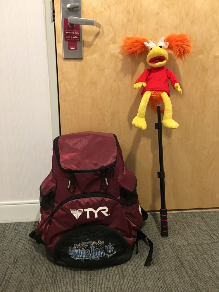 My large backpack fully loaded and my ‘Red Fraggle on a stick’