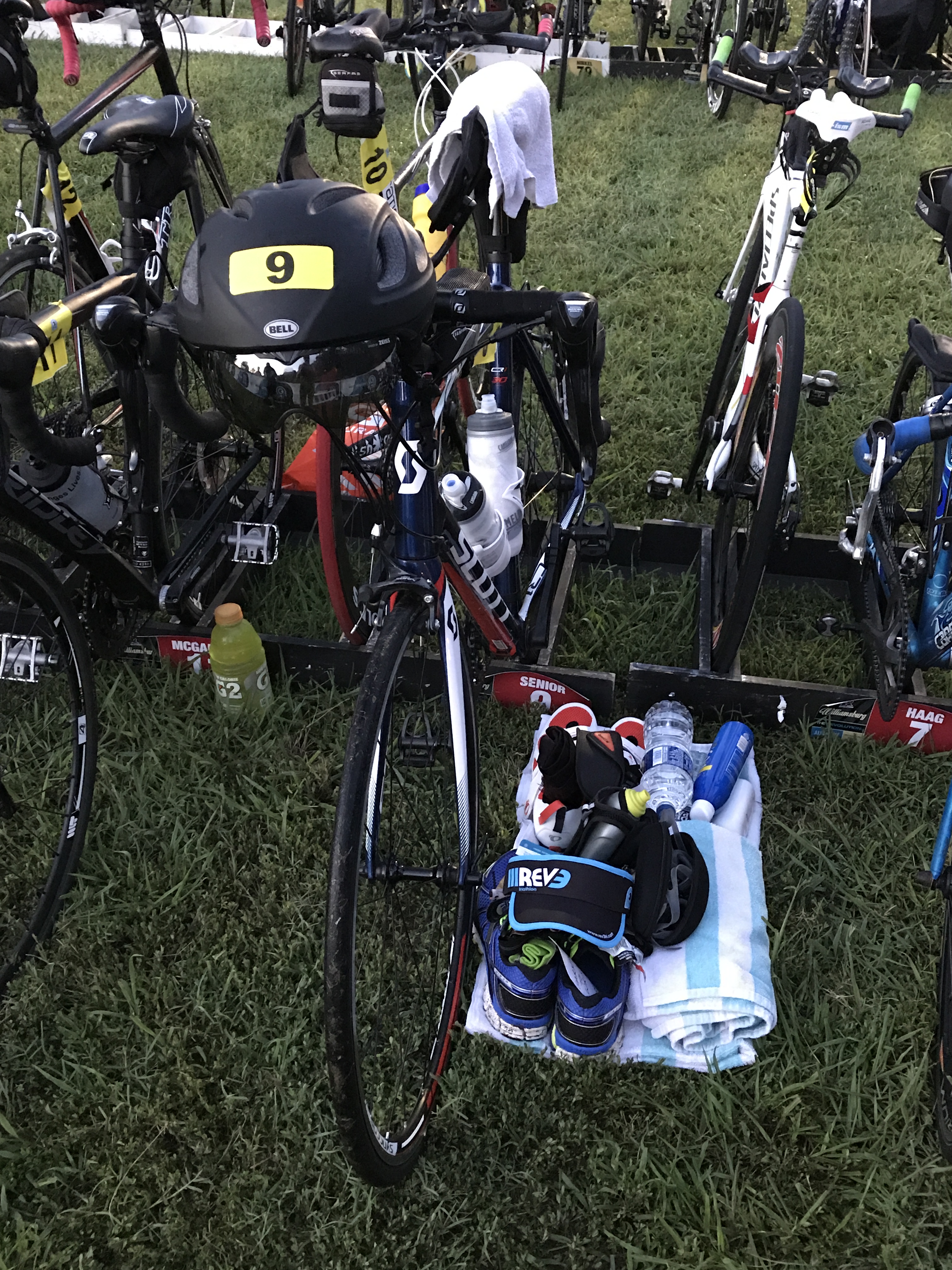 Finally…the redemption race. Returning to the scene of the crime. My goal was to stay on the bike and finish with no trips to the emergency room. Besides, my wife decided she wasn’t going to drive me there so I was on my own for this one. I decided to do both the sprint and half distance races again this year. Yes, stupid is as stupid does. I never learn. While the Sprint course was pretty much the same, the half distance bike course was different…and much hillier than last time. I did however stay on the bike the whole time so that’s a win. It was such a hot weekend. The water was so warm it was like soup, not wetsuit recommended. Saturday’s Sprint triathlon was fine. It was really an effort to just keep loose and get the nerves out. I finished the sprint in a time of 1:43:52 which was quicker than 2017 but then I found out after the race distance was a little shorter by just over a mile or so. Sunday, the day of the half distance, was why I was really there.