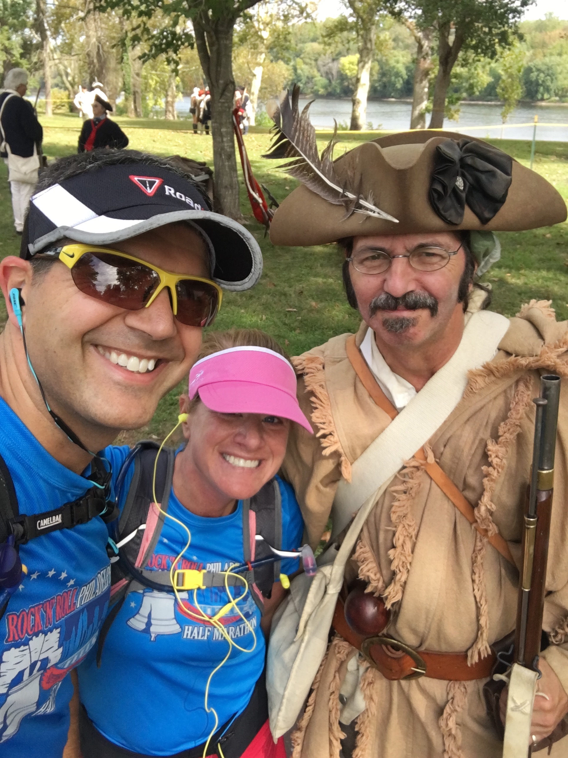 We’ve been taking the opportunity to get some of the long runs in along the Delaware Canal as it is fairly flat but very close to where we take the kids for Sunday school so we can save some time. It’s been great running there as the temperatures have cooled. We changed our route up a bit this year and crossed over the Delaware River at Washington’s Crossing so we ran both on the Pennsylvania side and the New Jersey side. Just to mix things up. On one of the times we were running together we crossed back to the PA side and saw a group of Revolutionary War re-enactors walking around Washington Crossing Park. We got a bit of a surprise when they started shooting off muskets and it didn’t really help when we ran through the park and my wife pointed out to them that I was British…thanks Babe, appreciate that.