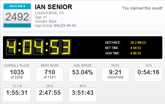 What else…oh yes, my wife and I signed up for the Baltimore Running Festival. We will be running the Baltimore Marathon together. My hope is that we can bring her marathon PR down further. I’m confident she can. We also signed up for the 2014 Rock and Roll Philadelphia Half Marathon. I was hesitant to do this again as I have run it for the last 3 years and we had discussed skipping this but for some reason we decided to give it another chance this year. After all, we have a family wedding later this year and we want to look good in the pictures.