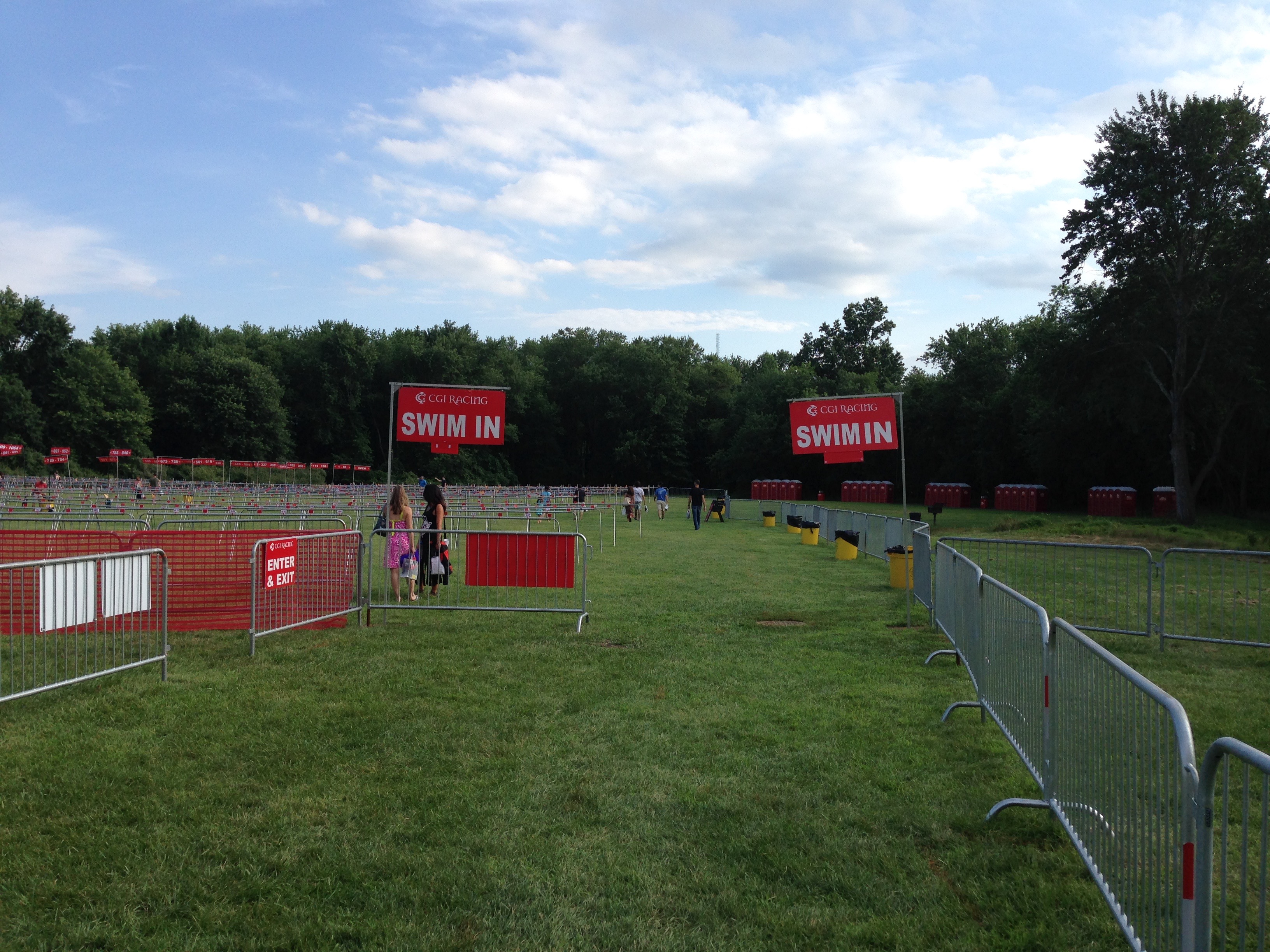 My goal when I got to the park was to pick up my race packet, ask a couple of questions that I had and then look at any expo they had (never having been to a triathlon expo). Packet pickup was in an open field by the transition area as was the expo. It didn’t take too long to pick up the packet and then the race shirt. I then went over to the information table to ask my couple of questions. A volunteer recommended I walk the transition area to get familiar with the swim entry/exit before the race. I hadn’t thought about that but it was a great idea. It also helped calm my nerves a little to see what I would be getting myself in for.