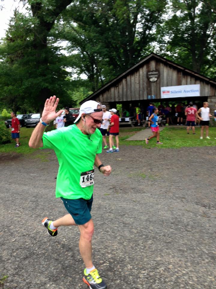 We had been warned to slow down going back across the bridge as there was a 90 degree left turn back into the park at the base of the bridge and we risked overshooting it and riding into the 5K course if we went too fast. It was a nice ride on the day and I was happy to return into transition and quickly change into my running gear. My ride was 54:34 minutes at an average speed of 16.82mph. I grabbed a salt tab and my water bottle only as I didn’t think I needed a gel or anything to boost my energy levels.