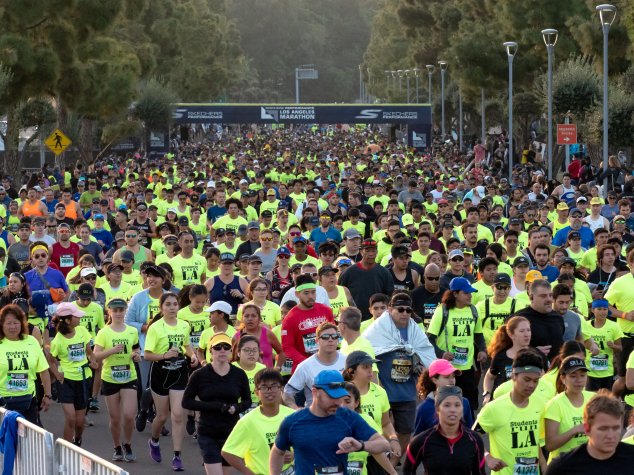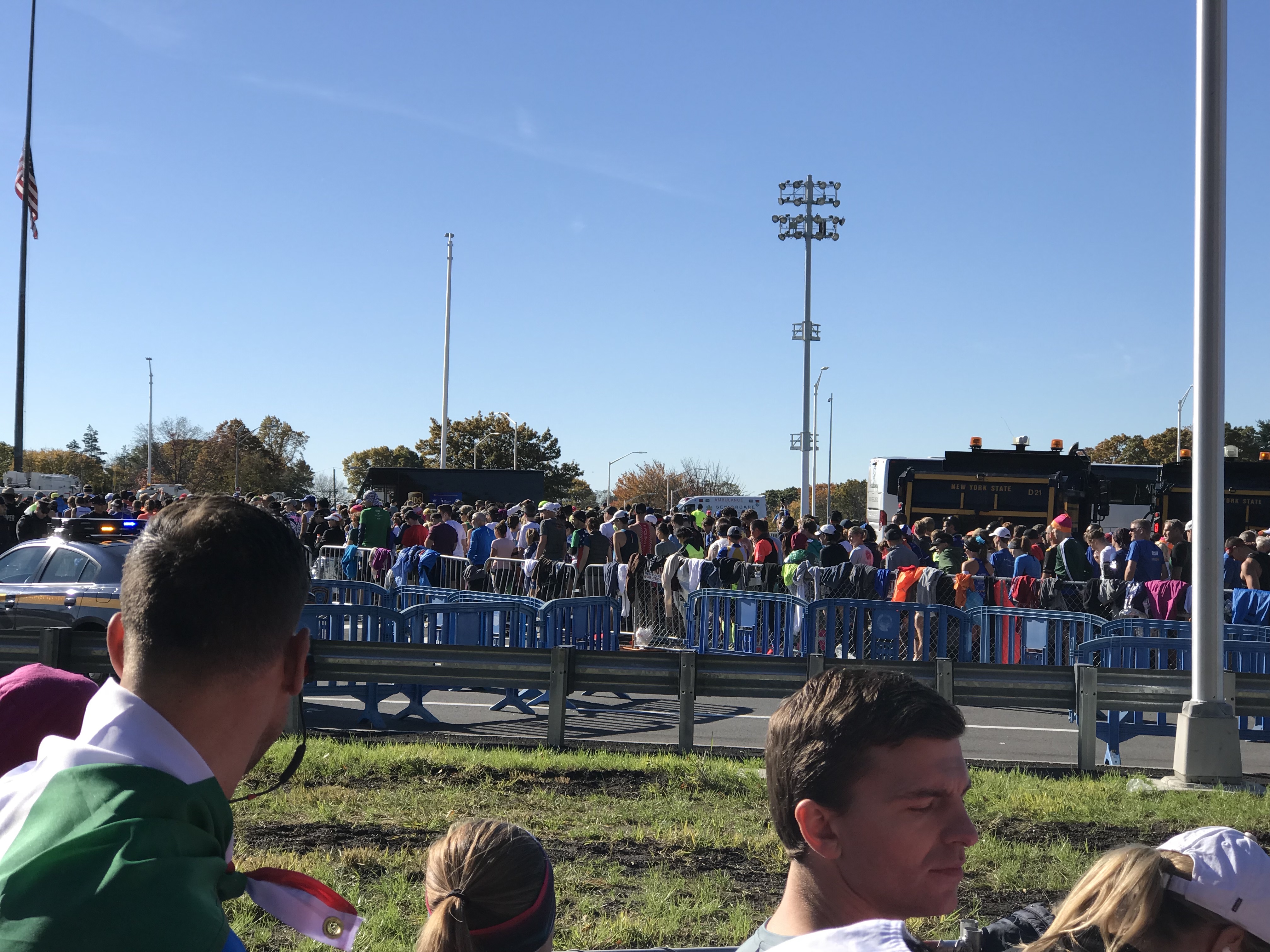 I left my wife in her starting location and made my way to mine. It was well laid out with clearly marked gear drop locations, plenty of space to move and stretch out and plenty of bathrooms for all participants. They were very methodical in shuffling everyone into the starting corrals. There were three entrances and once a group moved off they updated it with the next scheduled corral. It was all based upon the number/bib information and the volunteers were very clear to confirm you showed your bib to make sure you were in the right starting area and in the right corral. You could drop back, like I did, not forward. Also, if you were in the wrong starting areas, for example red but with a blue bib, you would be turned away. This is probably for means of people flow for 56,000 runners.