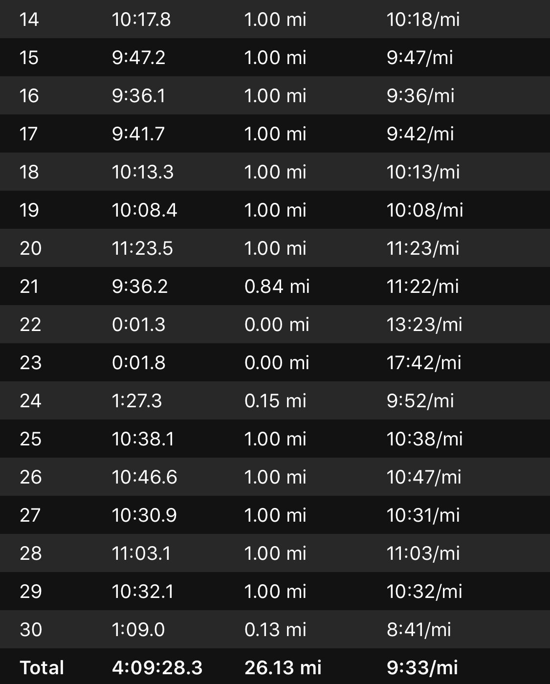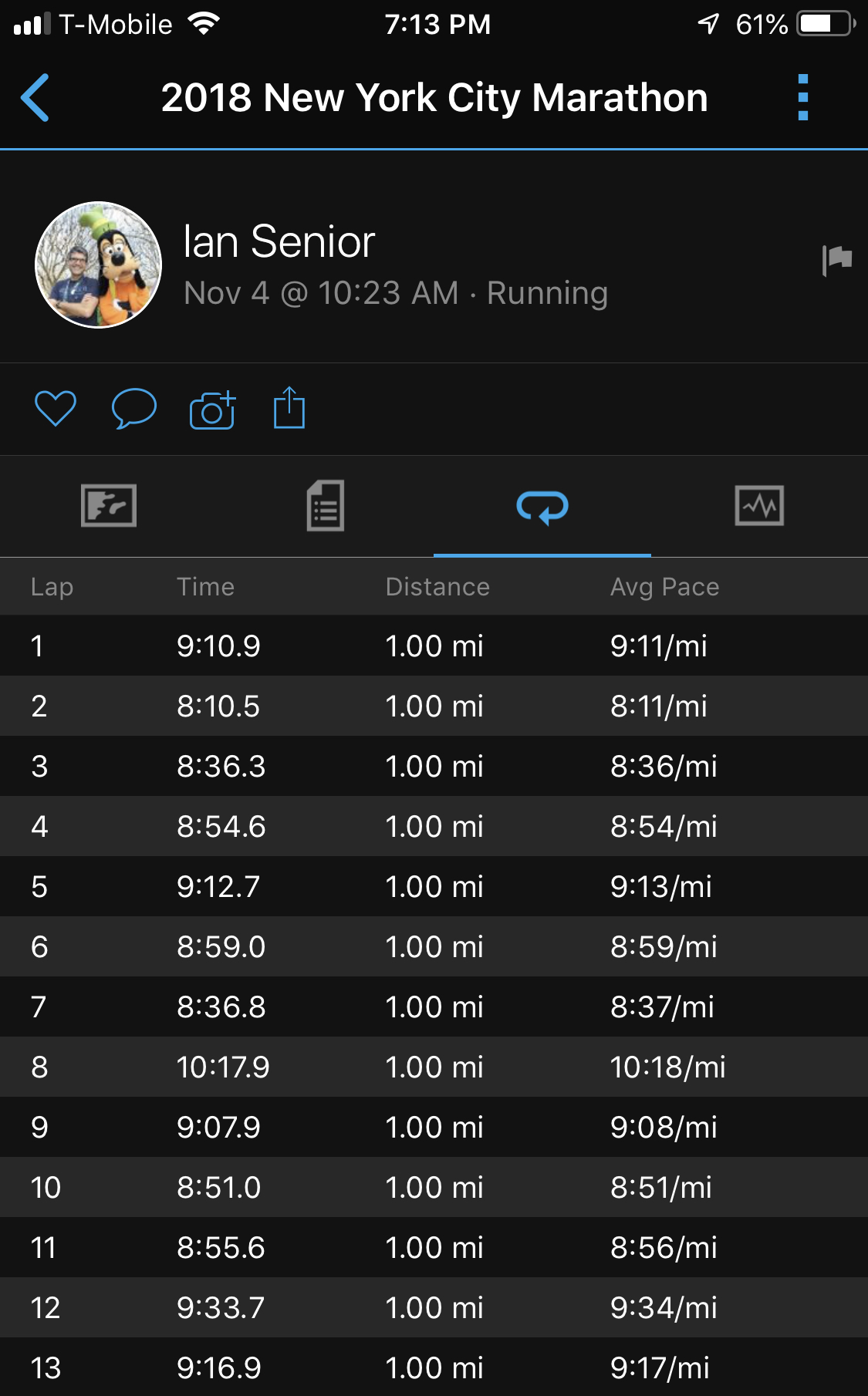 It was made clear before the expo that it was not possible to change corral or start times so as we had different starting times I planned to hold back to start at 11am when my wife’s corral would be setting off. Based upon the information in the race guide, all the starting areas (there were 5) and corrals merged around mile 3 so we planned to meet around there as were should have all been starting at the same time. Just to jump forward, the merge was actually after mile 3 and thankfully we both had our phones to connect so we met up at mile 4 instead. Funnily enough my wife was 7 minutes ahead of me but we both had the same time on our watches (she had paused her watch when she arrived at mile 4).