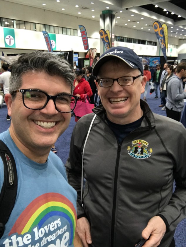 On our way through the expo we stopped in the official merchandise area which was really busy. My boys helped pick things out for both my wife and me and we used the resources we had to take pictures and send over to my wife to review and ‘approve’ before I paid. My boys went ahead into the expo to look around while I took pictures around the area before heading into the expo hall and meeting up with them. They found a place for a quick massage. It’s hard work being a non-runner at a race expo!!!
