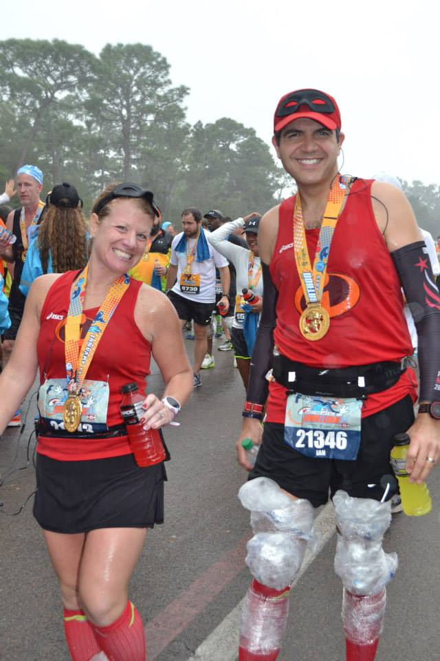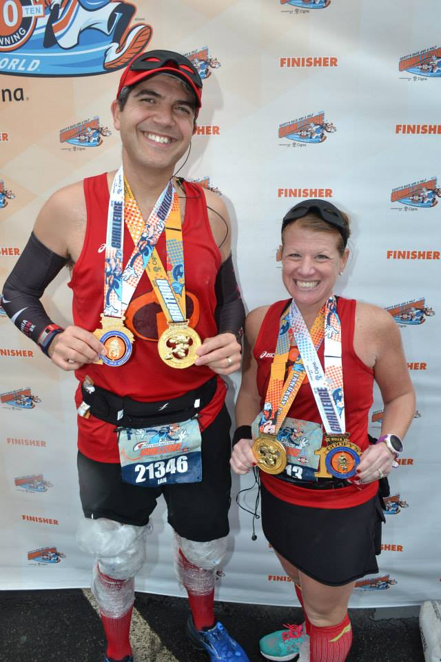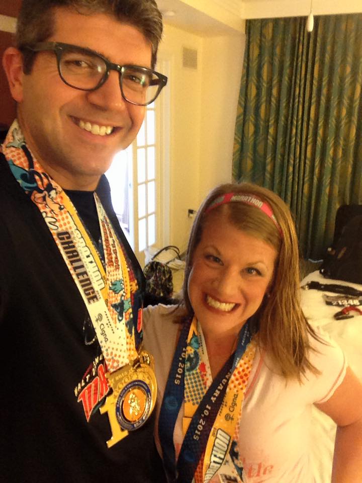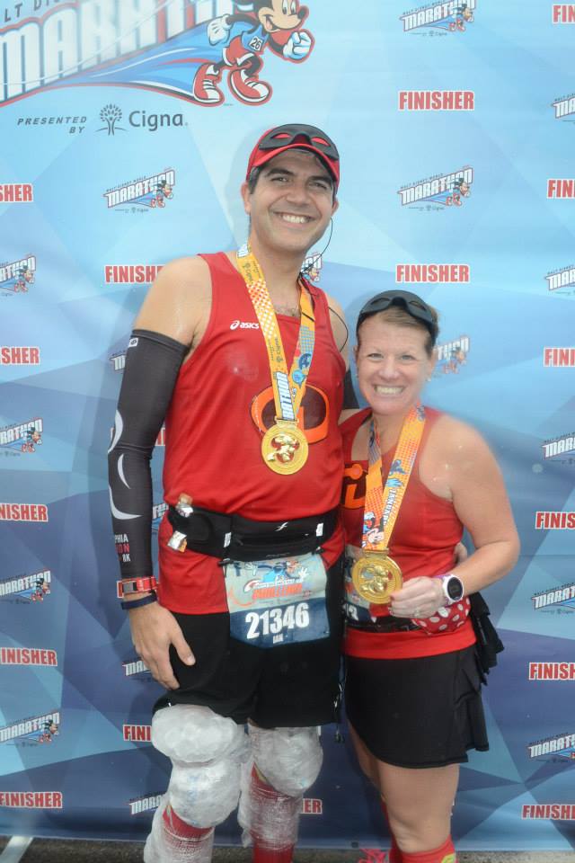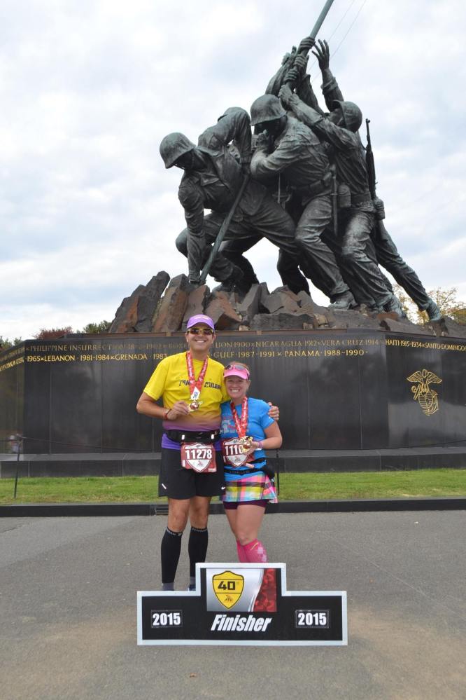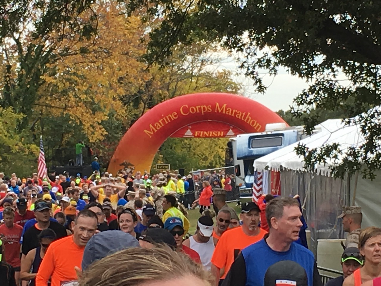 That last hill, positioned where it was on the course, took a toll. We slowed down quite a bit. My wife began to feel some discomfort in her knee. I could feel my calf muscles twinge from the elevation. As we made our way back to the finish we had to walk a bit. My wife told me to go ahead but I was not intending to leave her so we walked probably close to half a mile or so until we saw RFK stadium rise up in the distance. It was then a run/walk to the finish (we had run straight through until the hill and were making good time). By now we had slowed down and the PR was out the question, still I knew we would still get to the finish around four and a half hours which was just a few minutes slower than my wife’s New York City time.