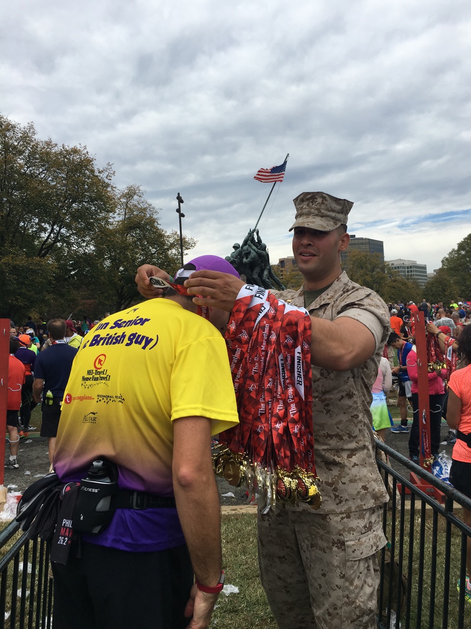 Between miles 5 and 6 of the course was the ‘inspiration – run to remember’ Blue Mile. It was all uphill but the side of the road showed pictures of all the fallen who have served our Country. As we neared the second half of the hill, members of the military and families of the fallen were holding American flags out for us as we passed by. It was a big hill but puts into perspective that it is just a hill and there are people who endure more on a day-to-day basis. For that reason, we could make the hill with no complaints.