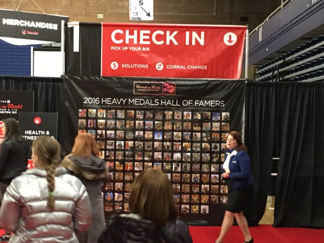 Once inside the expo we were led downstairs to bib pickup. We also had the chance to try on the Marathon Finisher jackets to make sure we had selected the right size. Bib pickup was fairly simple and t-shirt exchange was easy.