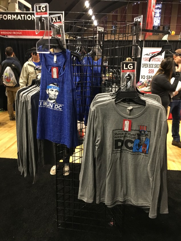 Just before the exit to the expo Rock ‘n’ Roll had some race merchandise set up. Both my wife and I bought the same cool shirt, me the long sleeve and my wife the tank t-shirt.