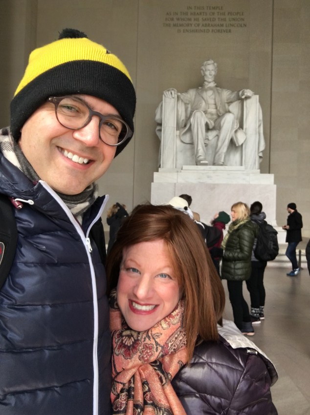 The next morning we had brunch plans with a friend of my wife. We did have a reservation but it was still an hour or so wait for a table. We gave the restaurant manager our cell number and he said he would call us around 15 minutes before our table would be available. We took advantage to walk around the George Washington University Campus where we were and then headed over to the Lincoln Memorial. It was a glorious sunny morning (still not warm but warmer than the day before). What a great finish to our weekend.