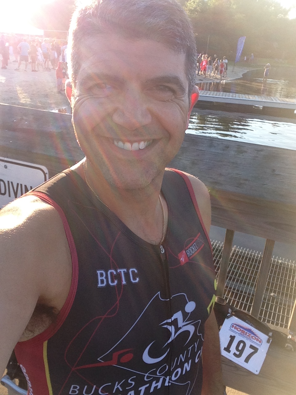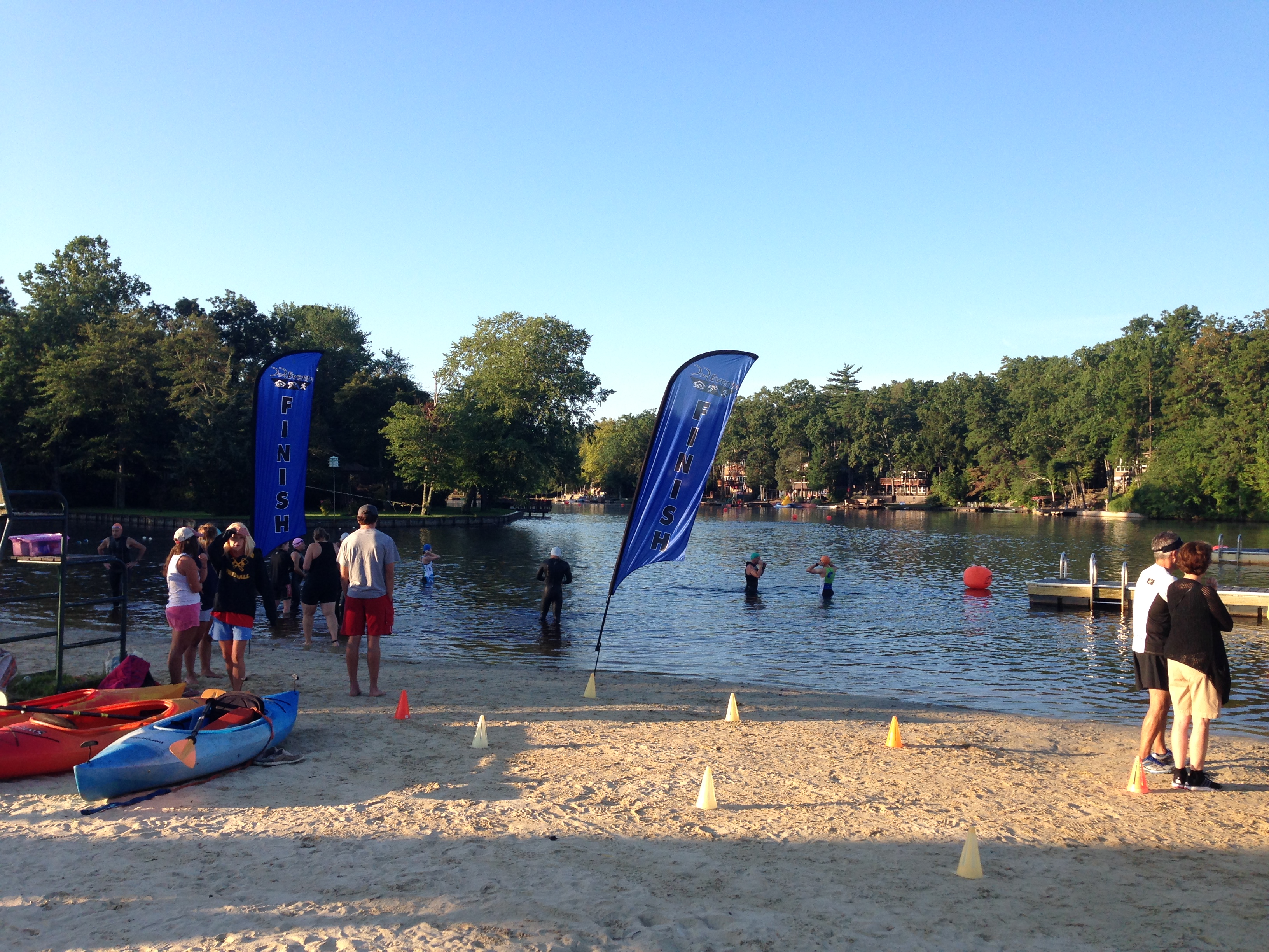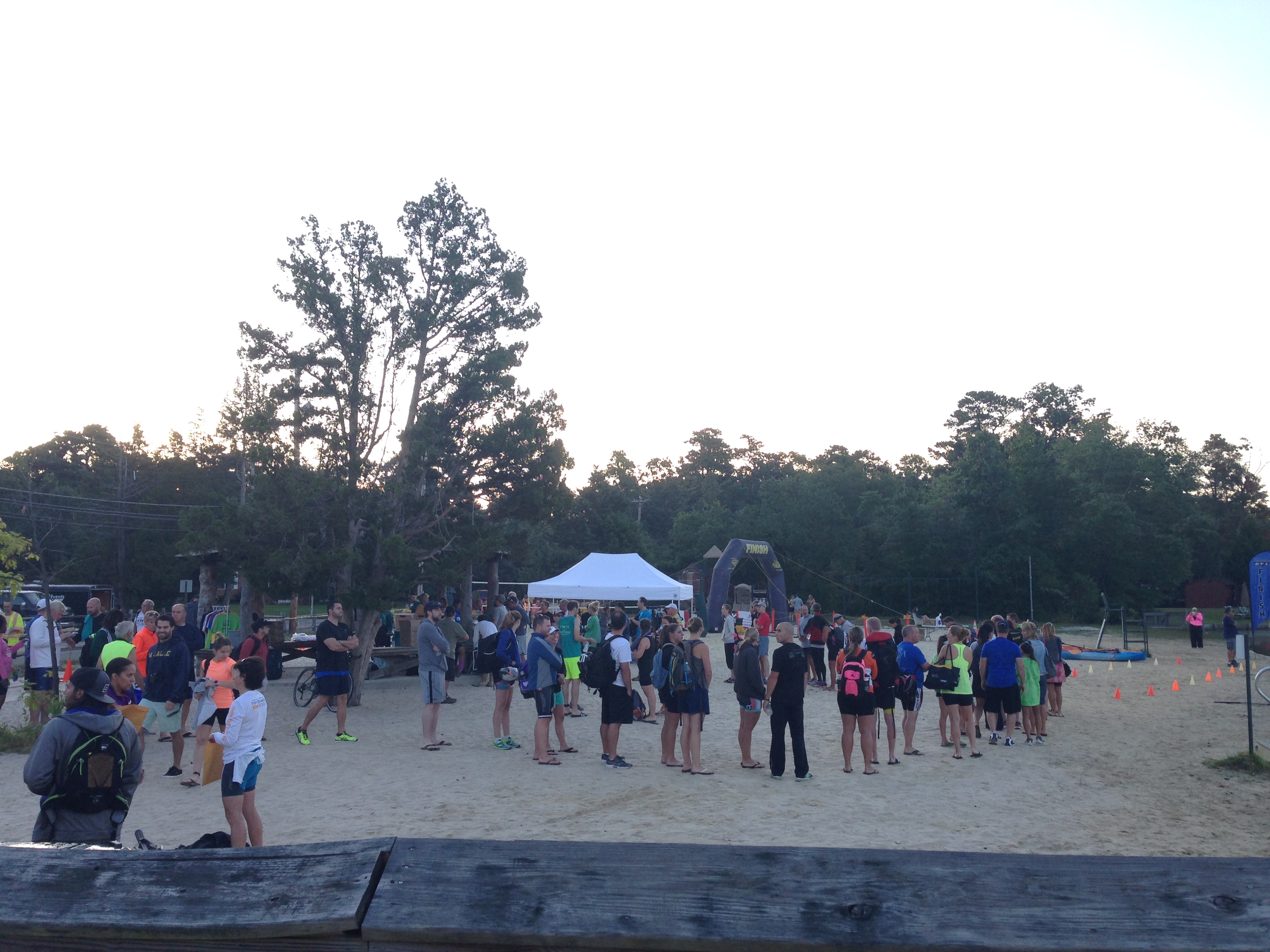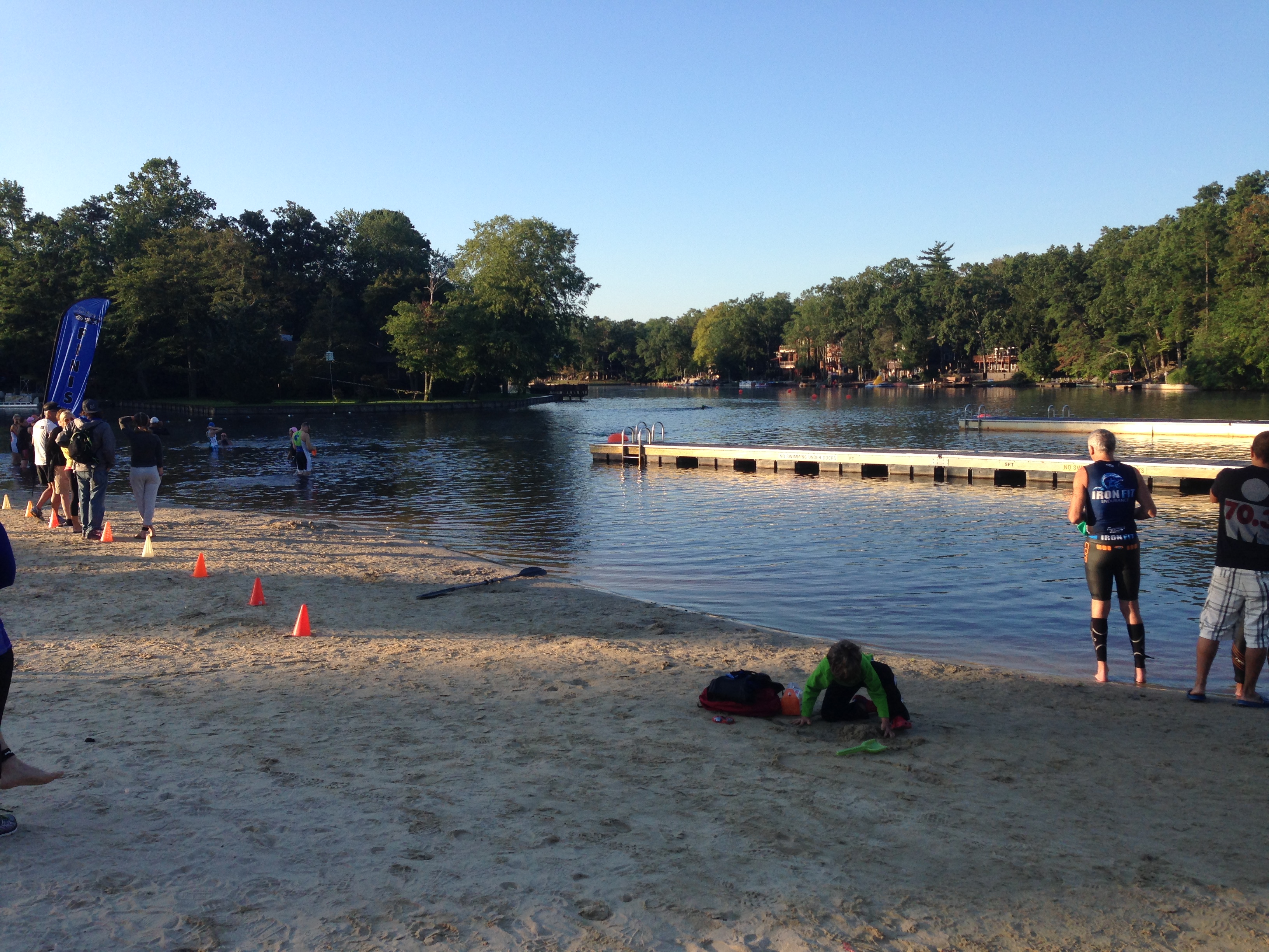 Early on Sunday morning I headed down to the race site, got to body marking and made my way into transition with enough time to set up my gear and have time to hit the bathrooms before transition closed. With my age group placing I was not due off until after 8am and the race started at 7:30am. Transition closed around 6:45 so I had plenty of time to walk around before the race. I took a Hammer Gel, some salt tabs and some water before heading out. It was still warm. The race was too warm to be wetsuit legal although that wasn’t really a factor as I’ve never used a wetsuit for this event. It’s usually too warm this time of year.
