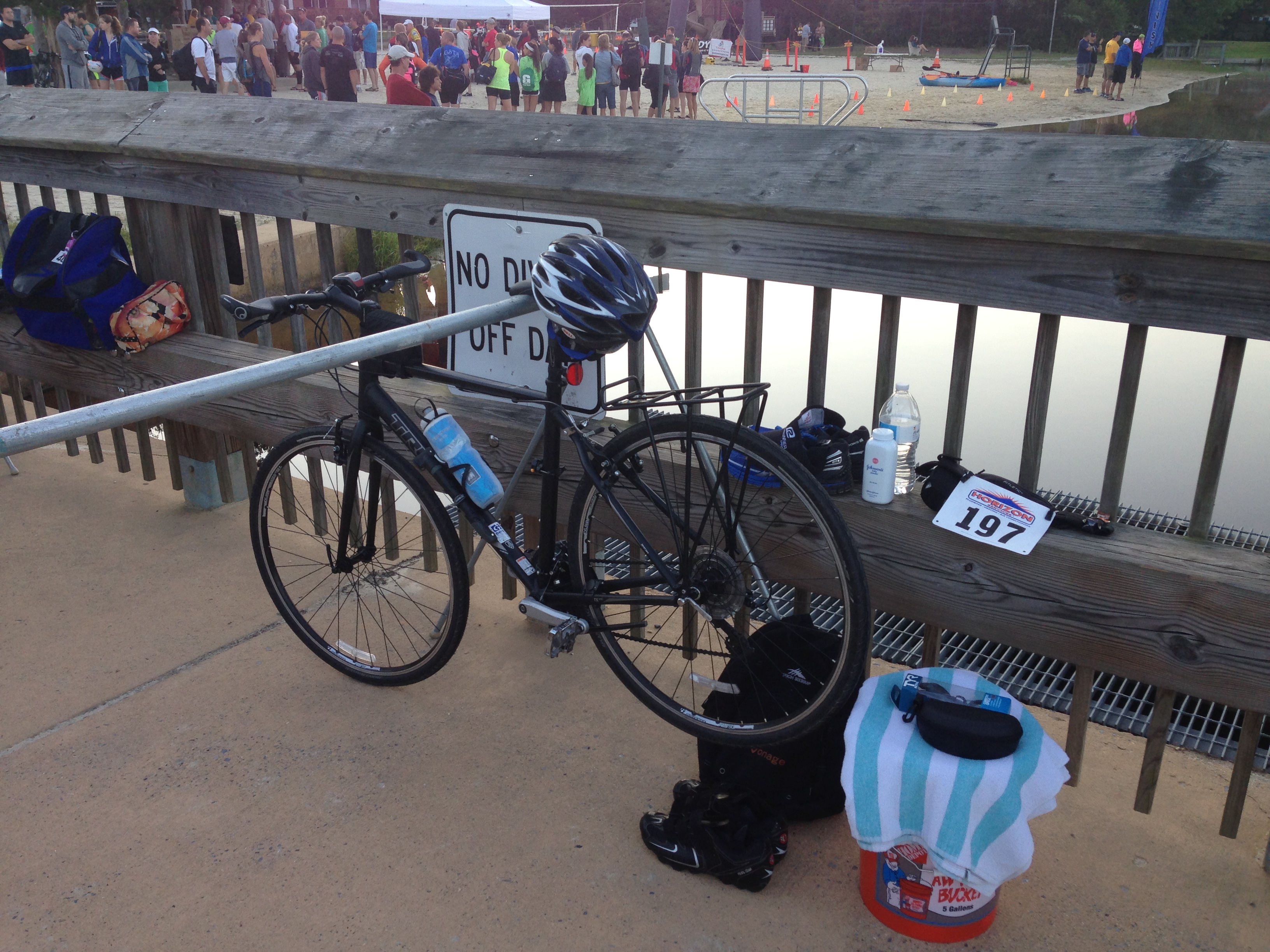 As I was sitting in the transition area with the remaining participants who were still there we heard a ‘pop’ and someone pointed out that because of the heat, tire tubes were beginning to over heat and explode. Yes, it was that hot. Â I took my time to pack up and then made my way back out to my car where, once my bike was racked and my gear stowed, I sat in the car with the air conditioning blasting on me for about 10 minutes before I attempted to leave for home.