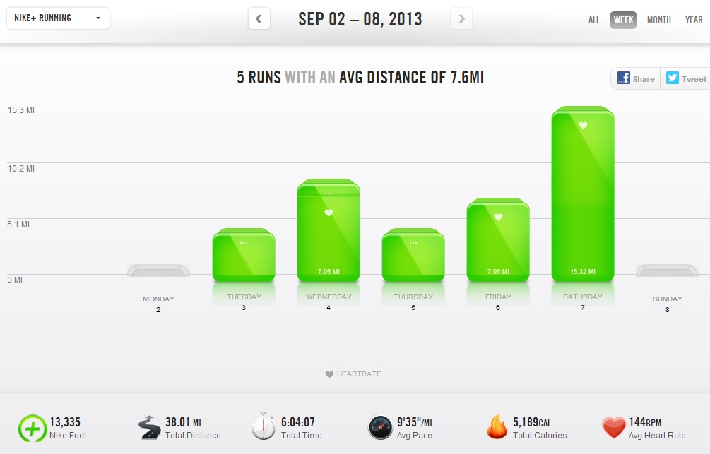 As I started this week my training plan (Hal Higdon Intermediate 1) said “This is the peak week of your training. Rather than fear it, you should greet it with near the same enthusiasm you will greet the marathon one month from now. But, for the time being, take it easy.”